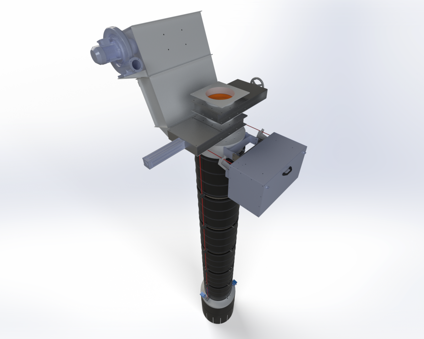 Kamyon doldurma körükleri iç içe iki cidar şeklinde tasarlanmışlardır. İç cidardaki aşınma konilerine temas ederek kamyona hububat dökülürken iki cidar arasında yükselen toz filtre sistemine doğru ilerlemektedir.