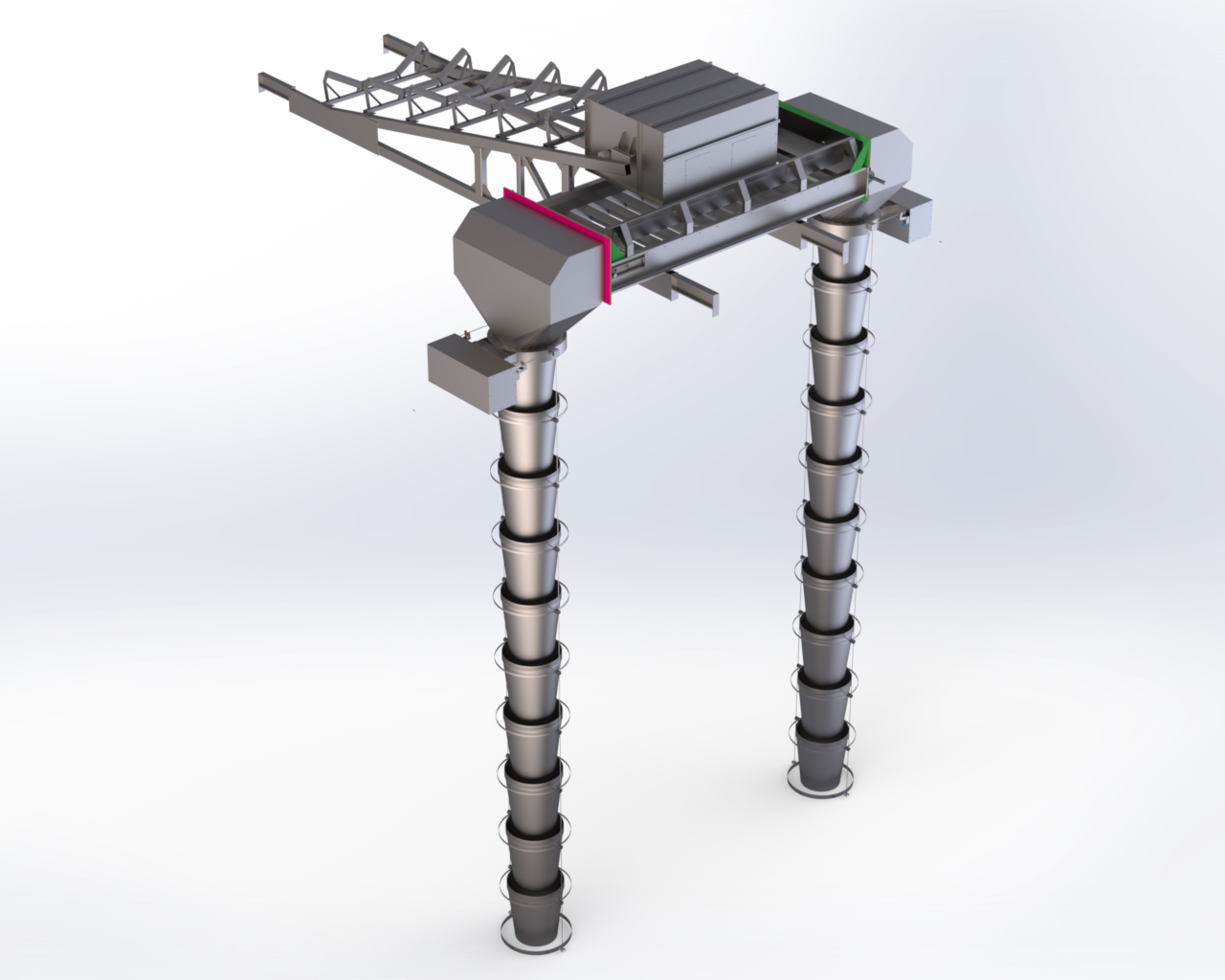 Yığını oluşturacak hammaddenin türüne göre iç kovaları hardox, paslanmaz çelik gibi metallerden imal edilebilir. Körüğün en alt kısmındaki etek yığından dışarıya toz çıkmasını engelleyecek şekilde bir yapı oluşturmaktadır.